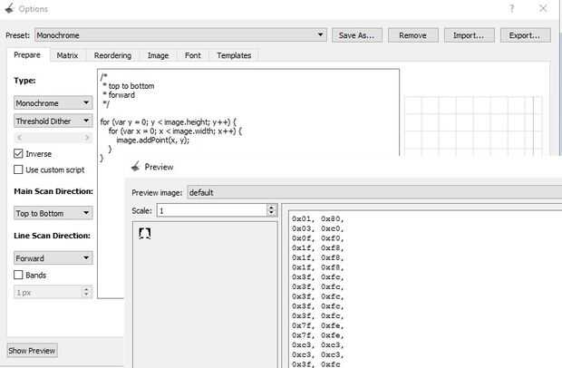 Ahora queremos poner un símbolo de alarma para mostrar si la alarma está activada o desactivada. Para esto usted tiene que convertir un archivo de 'bmp' en formato hexadecimal que puede ser almacenado en memoria flash de arduino. Para ello, hemos utilizado el mapa de bits convertidor de maleficio, que puede descargar desde https://sourceforge.net/projects/lcd-image-convert... . Ver la configuración de una imagen monocroma con opción de imagen invertida forma de 'campana' puede ser coloreado según su elección. Se adjunta imagen de mapa de bits de muestra y el código hexadecimal de campana es: