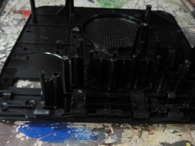 La parte superior puede montarse en la parte blanca de la caja con la placa de circuito en el medio. Manteniéndolo así en las cerraduras de reloj de la reconstrucción de la placa de circuito en el lugar con respecto a los botones. sin embargo, las paredes de la parte blanca toman un montón de espacio para que éstos se retiran. Esto se puede ver en la segunda foto.
