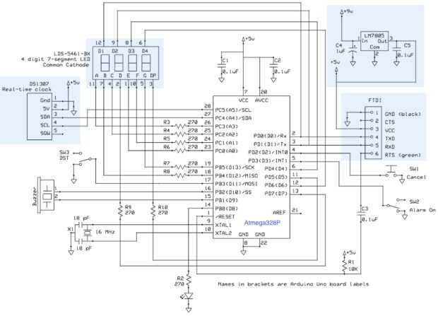 • (270 OHM) en los medios de lista de conexión de 7 segmentos led que una resistencia de 270 ohm debe conectarse en serie con los pasadores led, esto asegurará que los dígitos led sólo se encenderán en el mismo nivel de brillo.