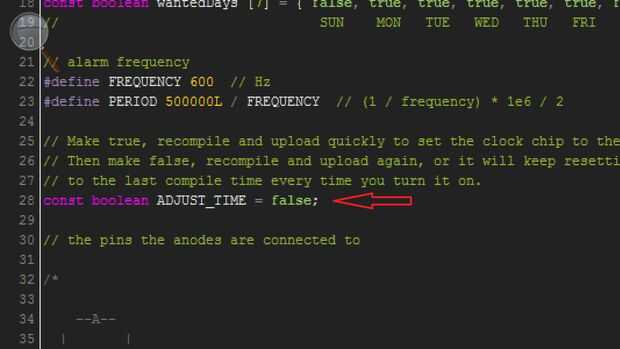 Cambiar ADJUST_TIME a False, vuelva a compilar y volver a subir. Si usted no hace cada vez que encienda la Junta que el tiempo será restablece detrás hasta el último tiempo de compilación.