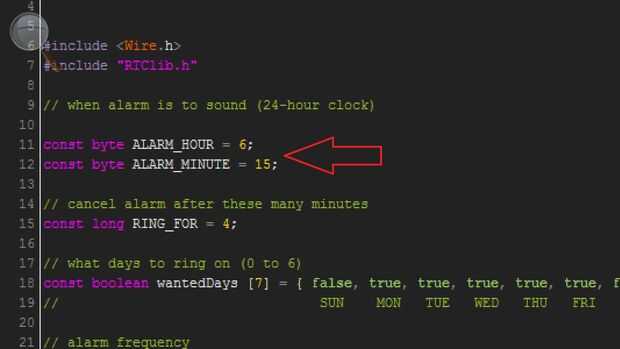 Qué días de la alarma al anillo se pueden cambiar en el código. (false = alarma de apagado) (true = alarma en)