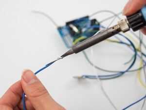 Cortar dos tiras de 20 cm de alambre rígido y soldarlos a la Asamblea protoshield como se indica en los dibujos anteriores.