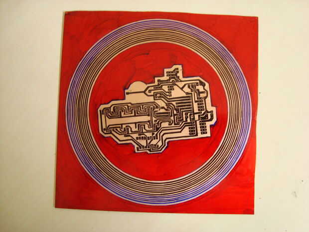 5) no hacen cojines de cualquier agujero para los LEDs antes de grabado. Sólo asegúrate de hacer las pistas concéntricas gruesas suficiente para que después de la perforación costumbre se desconecta totalmente.