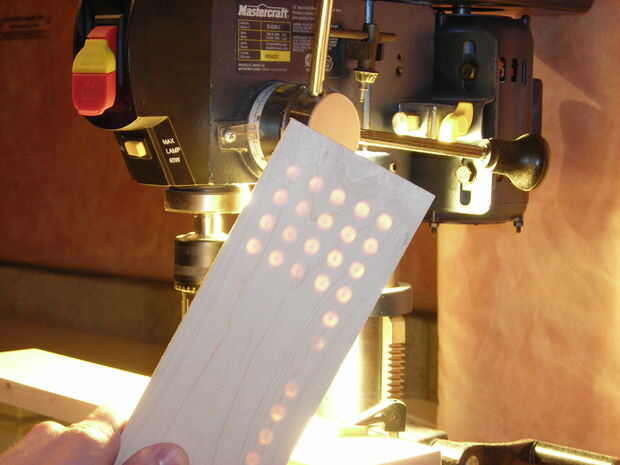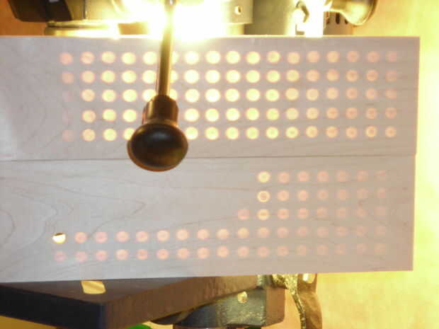 Una vez que estés cómodo con los agujeros de perforación, pasar a la última pieza de madera y taladrar cada agujero. Ser advertido que esto toma paciencia, no se apresure o puede quemar un agujero y tengo que reiniciar.