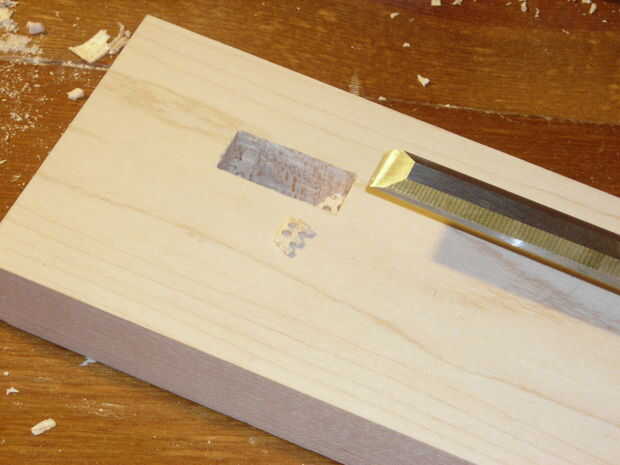 Para tallar el puerto de controlador, perfore la línea interna de la plantilla. A continuación, tallar la parte externa de la plantilla de 10 mm de profundidad, usando un cincel (tenga cuidado de este paso, es fuerte).