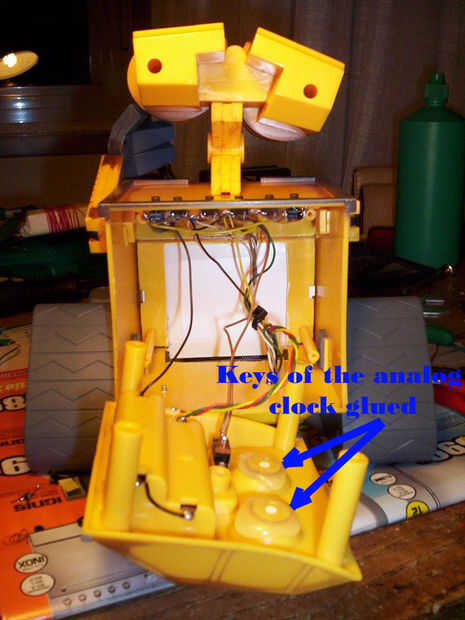 Aquí puedes ver todos los cables y los botones del reloj viejo pegado