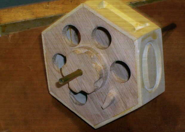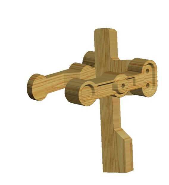 Se adapta a las decenas de rueda de minutos entre los dos brazos. La rueda de minutos los monta en un eje que sobresale del brazo derecho. La rueda de horas se monta en un eje que sobresale del brazo izquierdo.