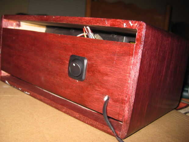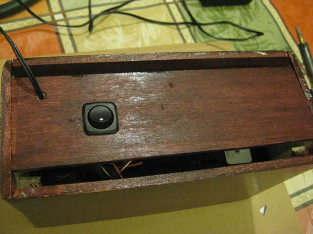 One último paso que es el interruptor en lugar de la soldadura e instalarlo. Debe tener los tres alambres retorcidos sobresale la parte posterior. Tuerza el alambre rojo y blanco raya junto con el cable positivo restante procedente de la fuente de alimentación. Siga adelante y que uno de los puestos de interruptor en la parte posterior de la soldadura. el cable rojo/blanco tendrá una tensión constante que por lo que el reloj puede recordar el tiempo cuando su apagado mientras permanece enchufado. Un poco similar a una radio de coche. El cable amarillo/verde va soldado al poste restante por sí mismo. Este cable es lo que enciende la pantalla y apaga.