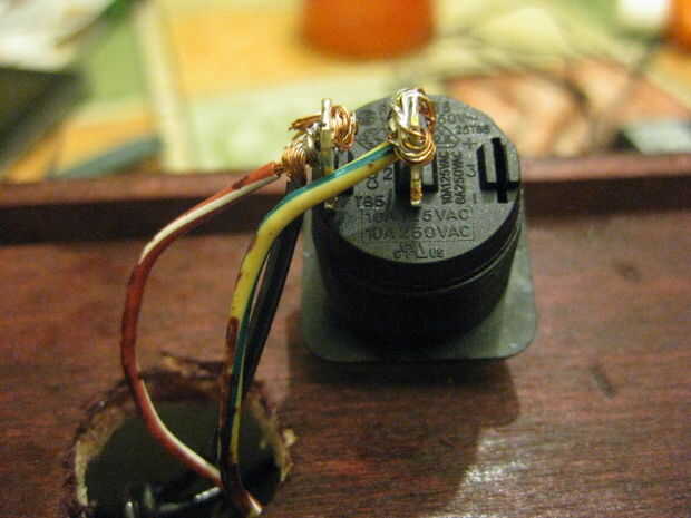 Tél último paso a hacer es insertar el interruptor en su agujero y tire cualquier cable de alimentación sobrante hasta el nudo que ató antes. Mi interruptor Coloque dentro del agujero agradable y apretado por lo que no utilizo la tuerca provista para asegurar el interruptor anterior.