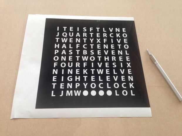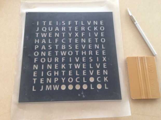 La cara está diseñada para bloquear la luz y solo se muestran las cartas. Simplemente ha trazado el archivo (face.pdf) en un cortador de vinilo con adhesivo vinilo opaco. Las tiendas locales de impresión serán capaces de proporcionar este servicio. Si esto no se puede encontrar puede imprimir en una transparencia que también puede lograr este efecto. Nota: había utilizado este método en una de mis versiones originales, usted necesitará 2 x densamente impresos transparencias para conseguir un efecto opaco.