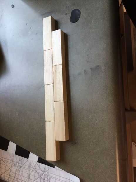 El bloque de Jenga eran muy similares a cualquier otro tipo de madera genérico. Puede ser fácilmente cortado y formado en cualquier tipo de patrones que se desea. Hicimos un patrón que se muestra en el cuadro de pegado a los bloques de tres a cuatro cuadras. Continuación se hizo esto para hacer el reloj. Otra vez cualquier patrón puede ser hecho usando una pistola de pegamento caliente o pegamento.