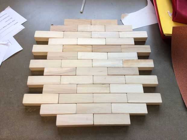 La imagen de arriba es el modelo acabado de bloques de cuatro y tres bloques alternando con la base de dos bloques. Cualquier exceso de pegamento o adhesivo puede bien ser lijar de corte apagado con un cuchillo.