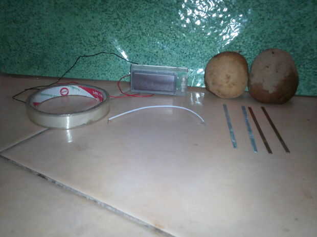 materiales necesarios:-patata-reloj digital-moneda de cobre-clavo de zinc-2 piezas de cinta eléctrica-2 cables de cobrePaso 1: Paso 1 Reunir los materiales que figuran en la lista de materiales necesarios.Paso 2: Paso 2 Envolver un alambre de cobre a