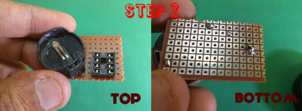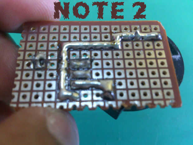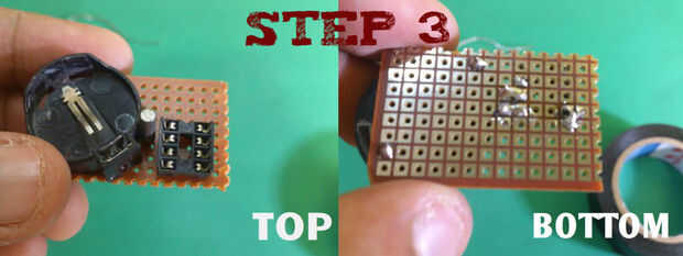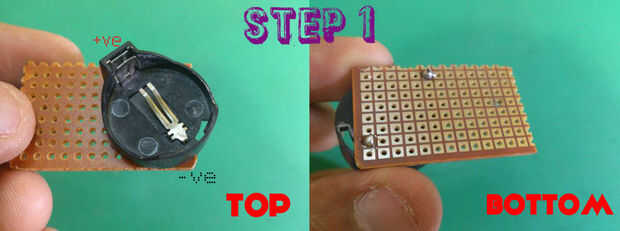 Corte la placa de prototipo a las dimensiones mencionadas e Inserte el soporte de la célula de la moneda. Luego soldar el extremo inferior para mantener la celda en su lugar.