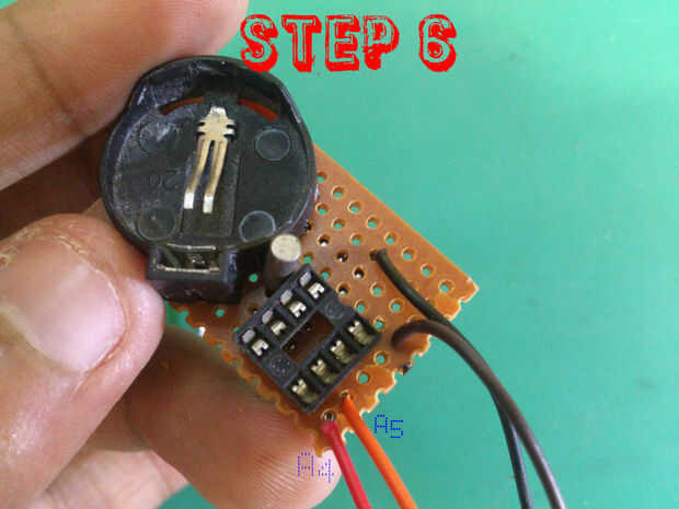 Finalmente termine el módulo tan Inserte la batería y el IC del DS1307 en sus zócalos. El diagrama final muestra el módulo terminado con todo intacto.