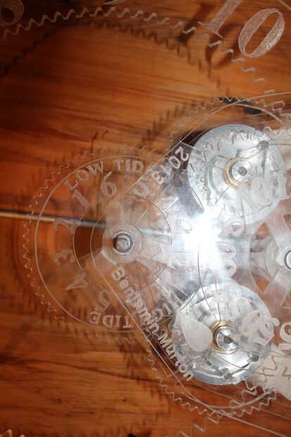 El reloj por DickB1 fue la inspiración para mi diseño de un mecanismo similar, sin embargo, con los artes de acrílico.La fuerza impulsora para el péndulo es un electroimán similar a la utilizada por DickB1. Sin embargo, el imán se fija hasta el final