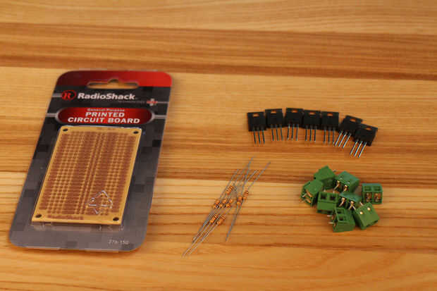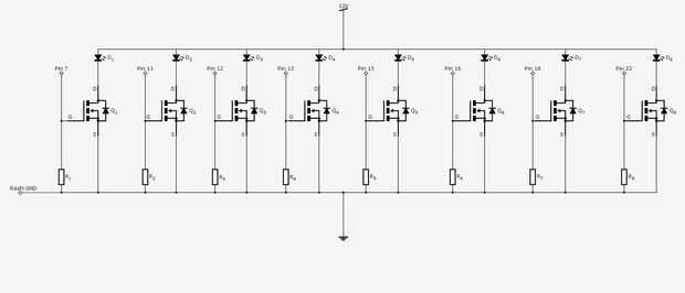Aquí está el esquema de nuestro tablero de conductor del LED. Estamos usando MOSFETs de canal N para conectar los LEDs de 12V alimentado a tierra. Elegí MOSETSs de canal N, esta configuración tiene lógica pulsos "alta" de la Pi activando las luces, que era más intuitivo del programa.