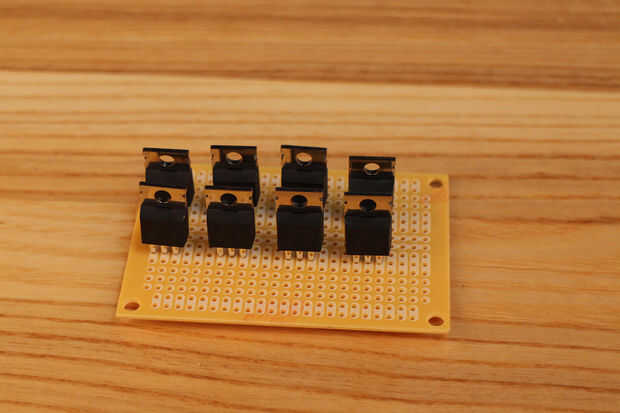 Espacio de los MOSFETs uniformemente en el circuito todos la misma dirección.