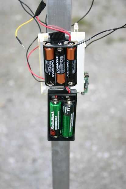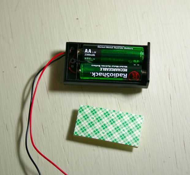 Usando cinta de doble cara, coloque los dos batería suministros a la parte posterior del poste vertical.