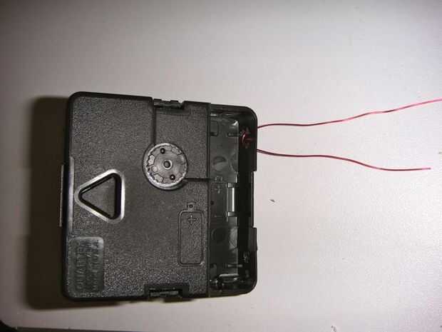 Perforaciones en una batería powered reloj mecanismo e hilo de alambre (yo uso alambre magneto) a través de los agujeros.