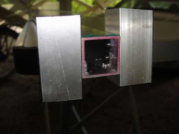 Coloque un pedazo de una pulgada cuadrado (4 pies) de tubería de aluminio para la base de acrílico con ángulo de aluminio y los tornillos pequeños. Mi base de acrílico se monta cerca de seis pulgadas por 12 pulgadas con el polo en el extremo izquierdo hacia la parte posterior.