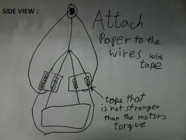 Coloque 2 hojas de papel (las dimensiones son su opción) a cada lado de los cables (par izquierdo y derecho par como se muestra)