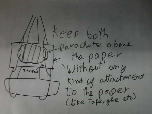 Mantenga el paracaídas libremente sobre el papel sin ningún tipo de accesorio para el papel, como sólo la meta sobre el papel.