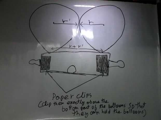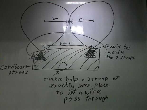 Tomar dos platos de cartón delgado y hacer un agujero en la mitad inferior posición [se muestra] lo suficientemente grande como para dejar un alambre pase a través, tanto de las placas. Ajustar la longitud de las correas por el radio girado de esos dos globos. Luego conecte Clip [paño de colgante clip] en 2 tiras de cartón, exactamente por encima del fondo sin estirado en la parte de los globos, emparedado entre las 2 tiras de cartón.