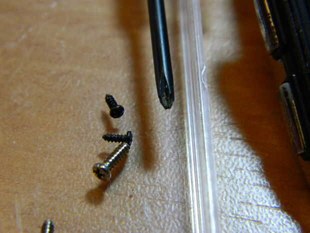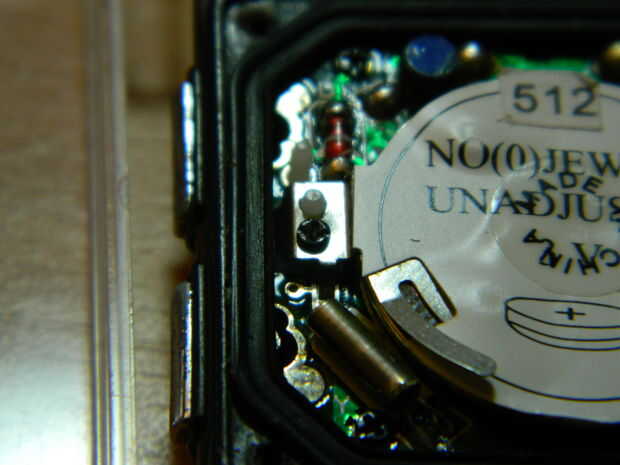 Esto puede ser la parte más delicada dependiendo de cada reloj.  Los dos tornillos que sujetan la batería hacia abajo son endiabladamente pequeño y difícil de tratar si perdido.  Recomiendo altamente que magnetiza su destornillador si no está ya magnetizado para asegurarse que estos tornillos no caigan al ser extraído o reemplazado.