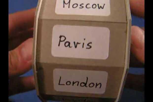 es un reloj análogo internacional para que pueda ver qué hora es en otras ciudades. Con un rodamiento de lazy susan, algunos imanes y un par de pernos de este bebé gira y luego bloquee en su lugar, así cambiando el tiempo junto con el nombre de la ci