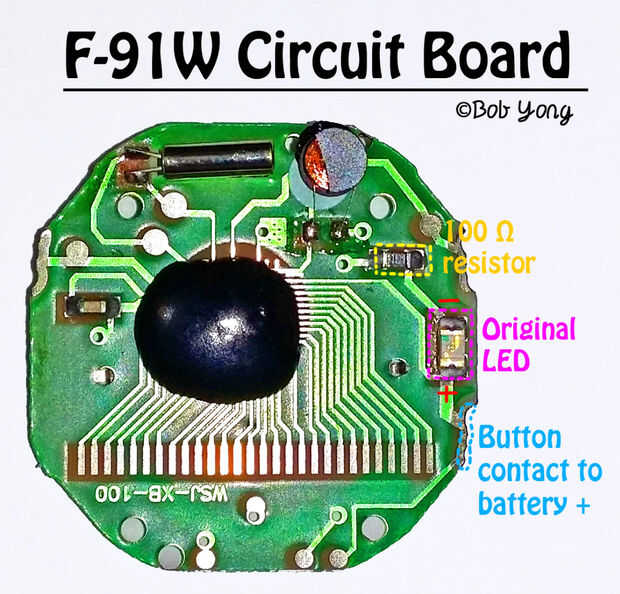 Identificar el LED en el circuito. La Junta es escasamente poblada como la mayor parte de la magia sucede en el microprocesador encajonar en resina de color negro. El LED está ubicado cerca de la parte. Los otros componentes son la resistencia de led, oscilador de cuarzo, un inductor y pistas de la pcb para comunicarse con la pantalla LCD.
