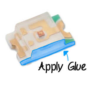 Determinar qué lado del LED va a estar en contacto con la Junta primero.-respetar la polaridad del LED!