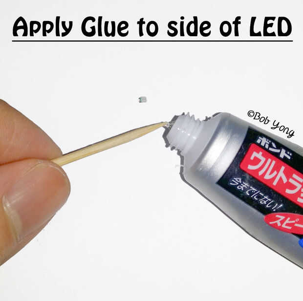 En la foto, estoy usando pegamento de contacto y pegamento probablemente va a funcionar mejor. Aplique el pegamento con moderación, usando un palillo de dientes. No intentar conseguir cualquier pegamento en los contactos metálicos - pero no te preocupes si accidentalmente obtiene poco de pegamento en los contactos. Más colas se desactivan por el calor de la soldadura fundida y un poco de pegamento en la parte de los contactos no se va a arruinar su empalme de la soldadura.
