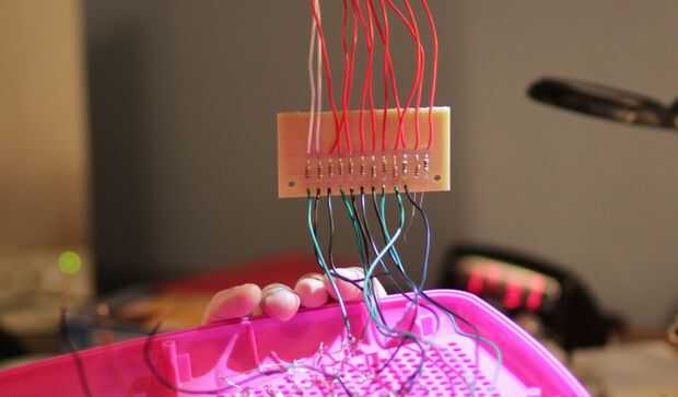 Para conectar el perfboard, simplemente inserte los cables y resistencias por la parte superior de la Junta. (La parte superior de la perfboard no tiene las almohadillas de cobre). Trence los cables y soldadura. Trate de conseguir de la soldadura en y a través de las almohadillas y no sólo las puntas. Mira el video detenidamente para obtener mayores instrucciones. No dude en cortar su perfboard, como hice en el video. Pero ten cuidado, el perfboard es muy frágil. Cortarlo antes de cualquier trabajo en caso de que la Junta consigue arruinada.