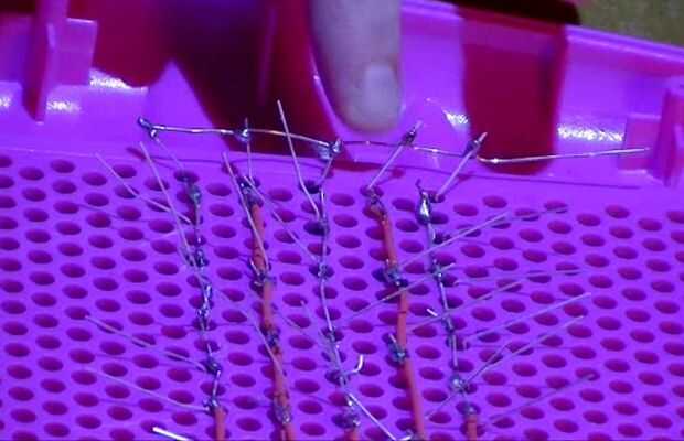 Tiempo para la soldadura de los ánodos. Los ánodos se corre verticalmente y tiene 10 columnas de ánodos para atar juntos. Decidí simplemente tira un trozo de alambre de conexión, hacen lazos en el cable, apretar los lazos con mi nariz de aguja, después de la soldadura. Los ánodos eran bastante fáciles comparado con los cátodos. Tenga cuidado de no corto los ánodos y cátodos - esto podría ser una PITA real para solucionar problemas más adelante.