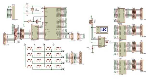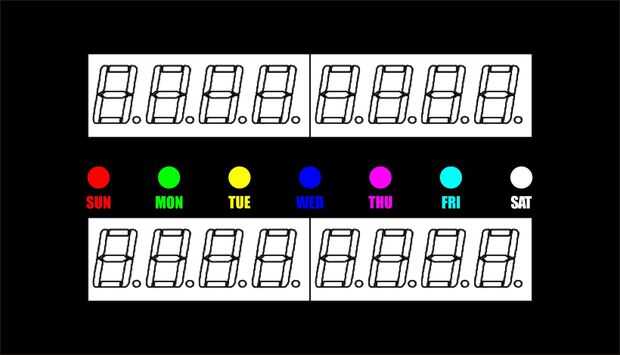 RELOJ LED de 7-Seg, DS1307 RTC, controlador de teclado 4 x 4 (1 / 4 paso)