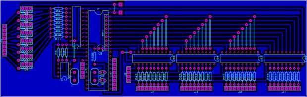 -1 AT89S52 o AT89C52 - 4 IC 74HC573 - 1 CMOS baterry - 1 DS1307 - 4 4digit de 7seg LED - 8 A1013 - 1 Respack 8 - cristal de 12MHz - condensador 2 - 2 condensador 10uF - de 33pF 16 Res de botón - Res 220 - 10K - conector