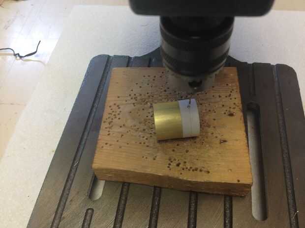 Nota: También puede esperar para perforar los agujeros para los tubos de hora hasta que han montado los engranajes en la parte superior del tubo. Esto hará más difícil hacer el agujero pero será más fácil a donde desea que los agujeros para ir en lugar de hacerlo boca abajo durante el montaje de los engranajes.