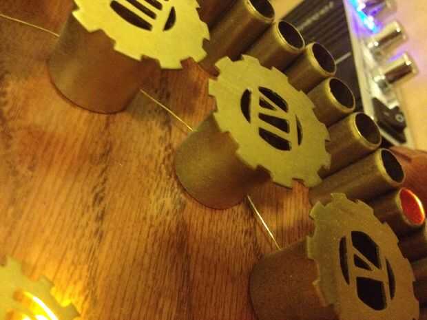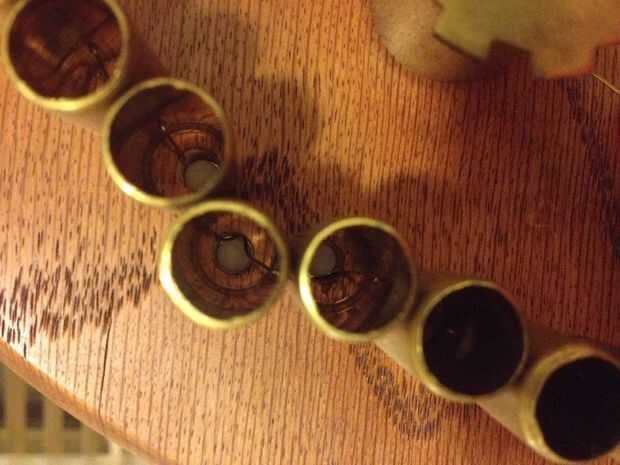 Para unir los tubos largos al reloj, me perforaron dos agujeros en cada longitud y utiliza alambre de latón para roscar en el reloj. Estos sólo son necesarios si quiere conectar los tubos de la misma manera.