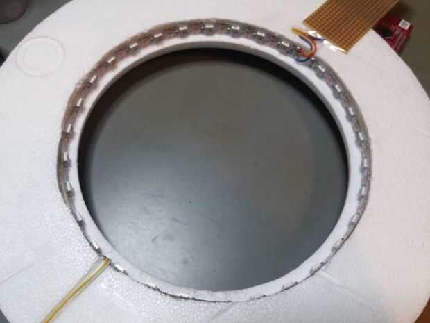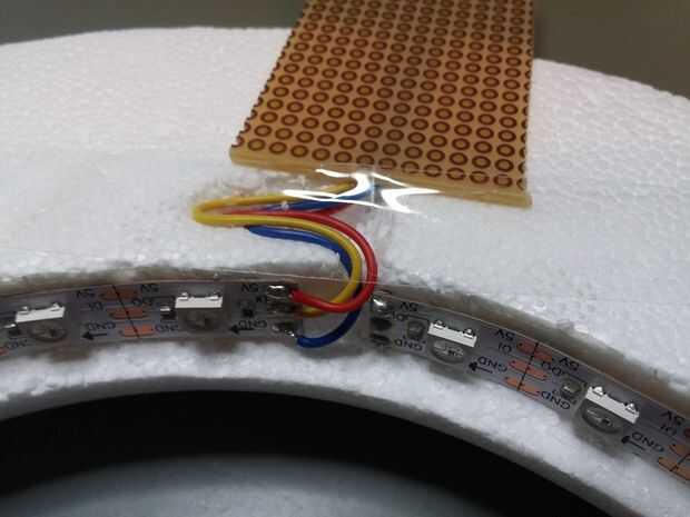 Yo sabía que quería tener una especie de anillo con la tira de LED apuntando al centro. Hay algunos tutoriales por ahí con el LED en el exterior, pero no me gusto. En ebay también puedes comprar algunas tiras de anillo LED con 60 LEDs, pero señalaron a usted, y no me gustaba la idea de mirar directamente a los LEDs.