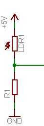 Esto resulta en una variación de la tensión en el punto entre la resistencia y la LDR. Este voltaje es utilizado por el PSoC mediante el conversor analógico digital un ADC. Si el LDR está conectado a 5V, el resultado podría utilizarse directamente para controlar el brillo de la tira.