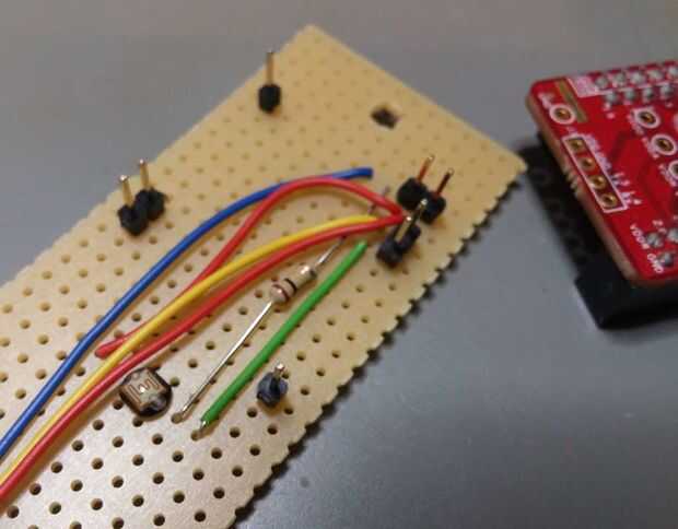 La LDR y la resistencia forman un divisor de tensión. La resistencia de la LDR varía con la cantidad de luz que recibe.