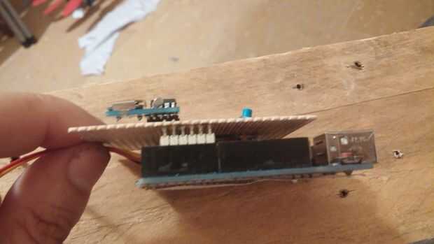 Usé un viejo clon de Arduino y algunos pins para conectar la placa de prototipo.