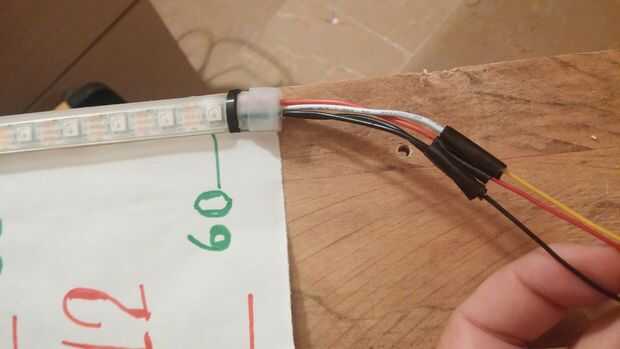 Amarras plásticas 3 usados para sujetar la tira en su lugar. Tenga cuidado de no cubrir ningún LED.