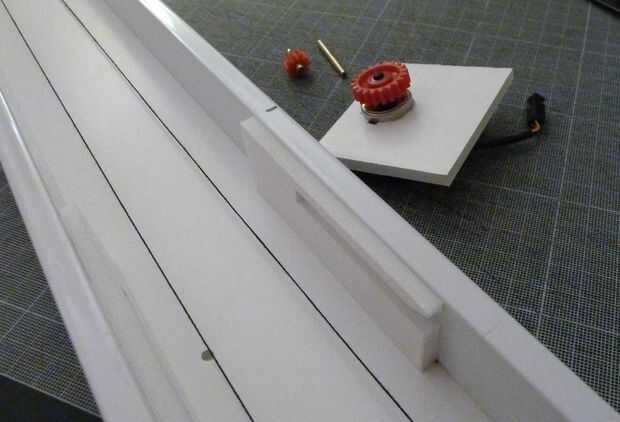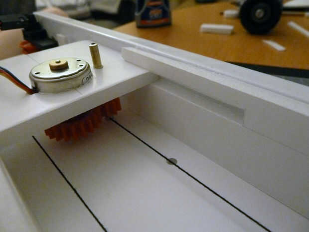 He añadido un par de guías poco plásticos de poliestireno de la hoja para mantener el hilo en línea con los engranajes.