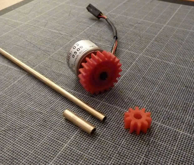 Al igual que con las poleas, los engranajes fueron comprados de rápido. Los tubos de latón eran productos de K & S metales, comprados de la tienda.
