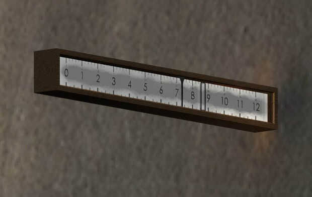 También no se ve raro. Estoy buscando para complementar una casa contemporánea corriente, así que usa los colores y materiales que allí se encuentran. La forma es inusual aunque y trae a la mente la ranura iluminada e indicador itinerante de un manual radio dial de sintonización. En ella es forma vertical me hace pensar de Barómetros o termómetros u otro equipo científico que lo convierte en el hogar.