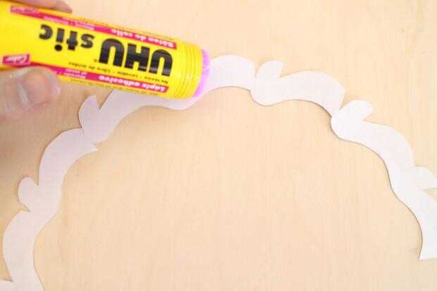 Ahora que ha cortado nuestras posiciones, voltearlas, frota sobre el pegamento, en el centro sobre la cara del reloj y presione hacia abajo.