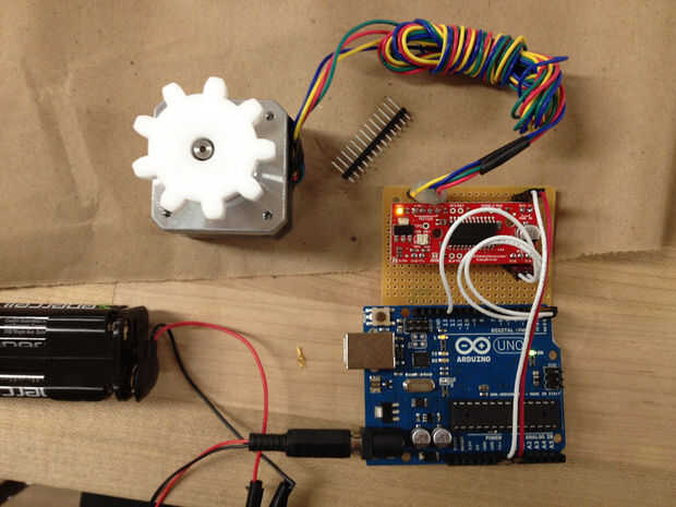 Para esto necesita un Ardunio Uno, Driver Easy, un protoboard soldable y detrás una batería de 12v. Soldar las piezas juntas según el diagrama. Ver fotos adjuntas.
