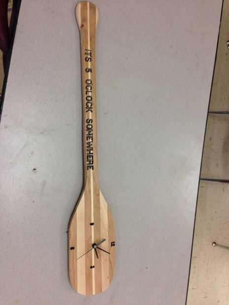 Un remo de canoa de madera hecho en un relojPaso 1: Cortar madera áspera Corte una pieza de 3/4 de pulgada grueso cereza a 37" por 2" luego cortar ese trozo por la mitad. Cortar una tira fina de 37 by3/4 de pulgada pino una hoja gruesa para pone